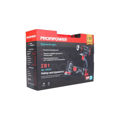 Аккумуляторный бесщеточный набор 2в1 Profipower ProfiSet 2B16 (Li-ion 2шт, 2.0Ач, З/У, в кейсе, E0210, E0245) E0229