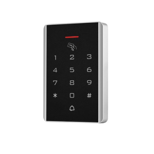 Контроллер-считыватель автономный бесконтактных карт 125kHz (EM-Marine), дальность считывания до 60mm, память 2000 карт/кодов доступа, 1 релейный выход, тампер, PIN-код клавиатура с подсветкой, вход/выход Wiegand26/34, подключение датчика двери/кнопки выхода/сирены/дополнительного считывателя, тревожный выход, 12VDC, эксплуатации внутри помещений, корпус пластик, -45...+60°С, (L)114x(W)75x(H)16mm