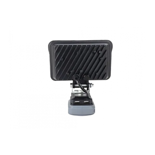 Фонарь имеет регулируемый угол наклона от 25° до 130°, что позволяет направлять свет туда, где он нужен. Корпус фонаря изготовлен из прочного алюминиевого литья под давлением, что обеспечивает его долговечность и надежность на стройплощадках.