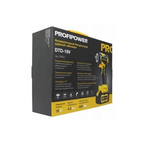 Аккумуляторный бесщеточный ударный гайковерт ProfiPower DTD-18V E0223