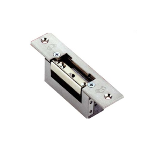 Электрозащелка нормально-закрытого типа (NC) для узких, ПВХ и алюминиевых дверей, регулируемая запорная планка, язычок разблокировки (режим "постоянно открыто"), 12VDC/8.65W, (L)67х(W)16.5х(H)28.5mm