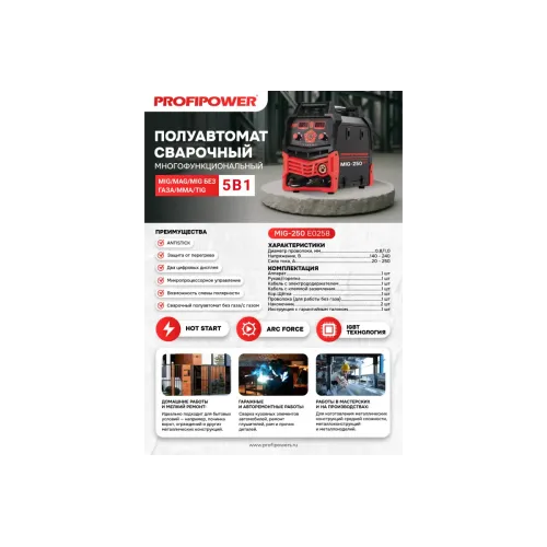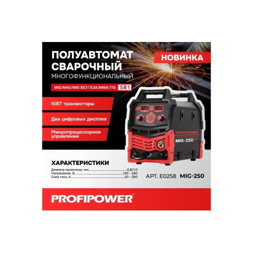Полуавтомат сварочный многофункциональный Profipower MIG-250 5 в 1 (MIG/MAG//ММА/TIG) E0258